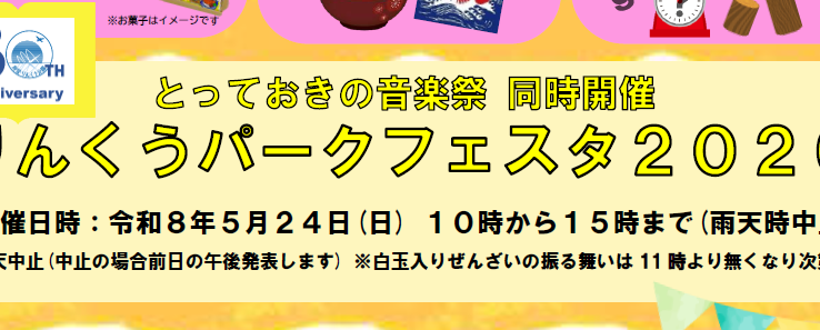 今年のパークフェスタは「とっておきの音楽祭inりんくう大阪」と同時開催開催日時令和8年5月24日(日... |