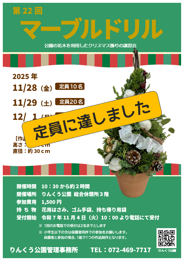 | 問い合わせ先 | りんくう公園管理事務所 TEL 072-469-7717(9時から17時)  |