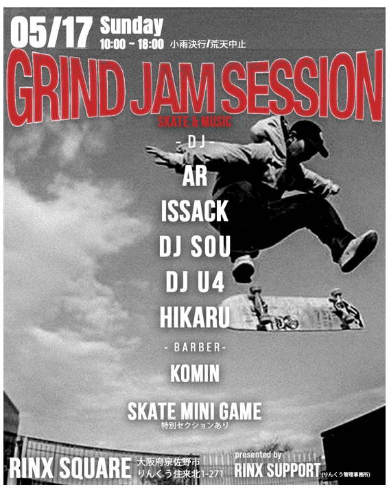 音とスケートが交わる一日泉佐野で、自由に遊べるジャムセッション開催DJのグッドバイブスに乗せて、スケート、音楽、カルチャーを全身で楽しむ日スケボー、ロンスケ体験会、ミニゲームや特別セッションもありその場のノリで、誰でも参加OKただ、滑るだけじゃない、”空気ごと楽しむ”イベント