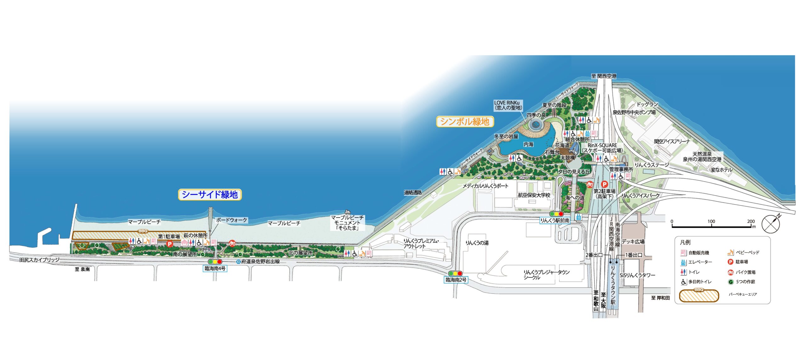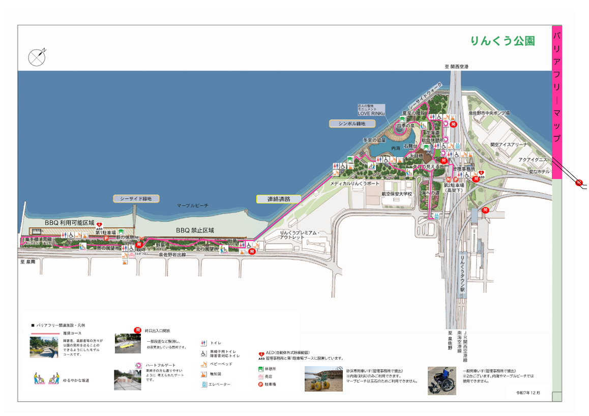 〇バリアフリーMAP りんくう公園におけるバリアフリー施設等を紹介したバリアフリーマップです。 印刷される場合はこちらのPDFファイルをダウンロードしてください。